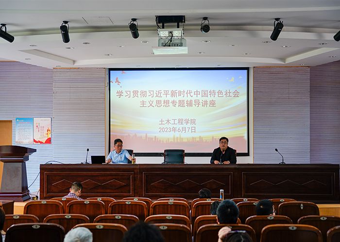 为扎实开展学习贯彻习近平新时代中国特色社会主义思想主题教育,引导党员干部不断加强党的科学理论武装,真正做到入脑、入心、入行,6月7日下午,土木工程学院举办主题教育专题理论辅导讲座,邀请校关工委副主任徐报喜作辅导授课。会议由学院党委书记谷伟主持,全体教职工参加。