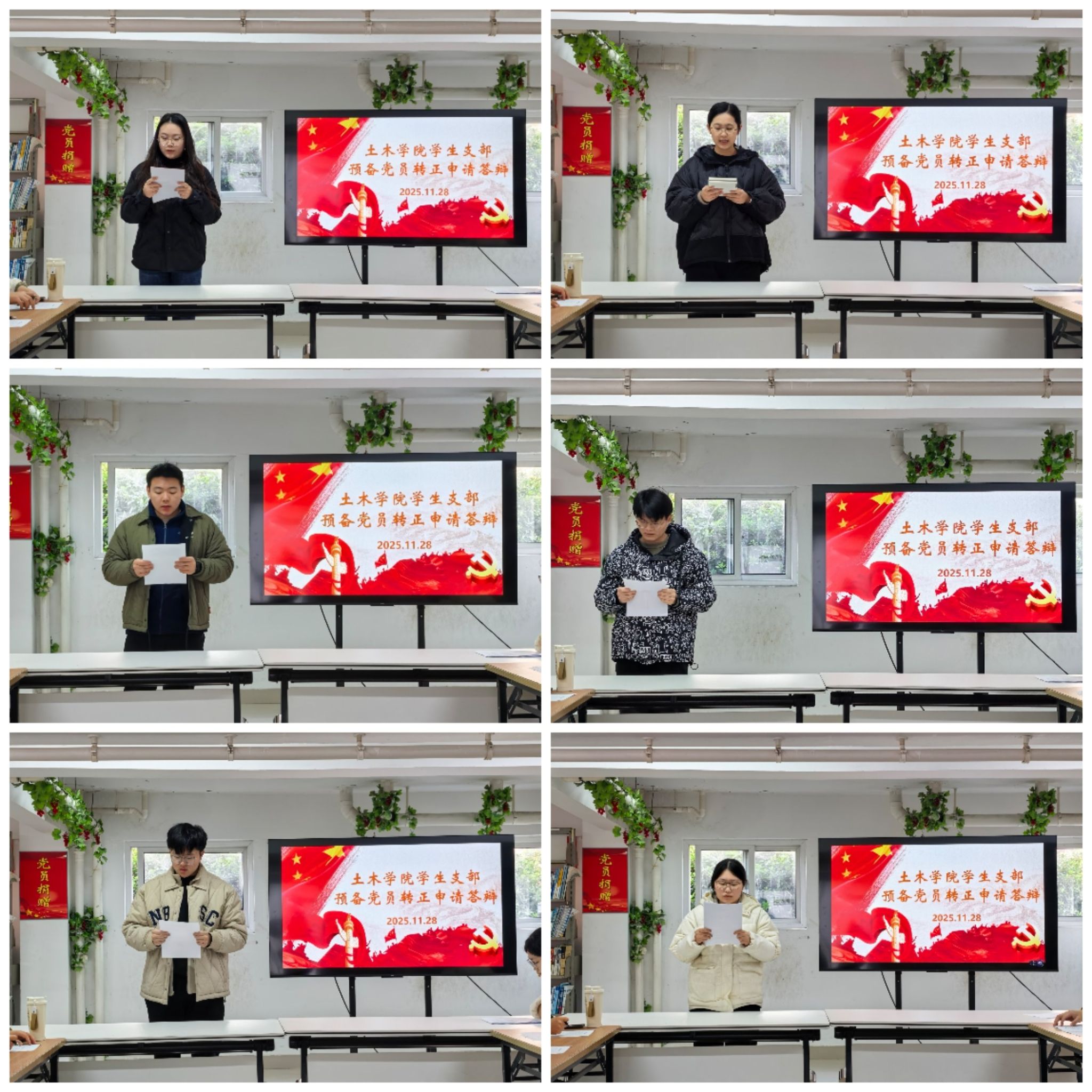 11月28日上午,土木工程学院在“砼心苑”一站式学生社区党建活动室举行预备党员转正答辩会,学院党委书记谷伟、学院党委副书记陈广正、学生党支部书记、支部教师党员及6名预备党员参会。