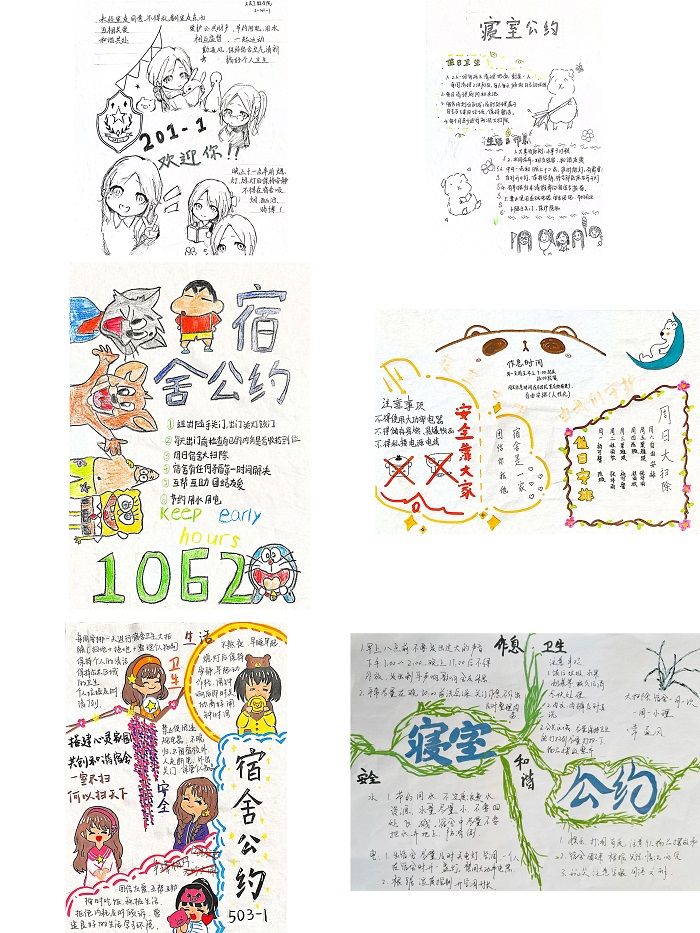 “寝室公约”设计大赛中,同学们更是才思泉涌,积极围绕健康、活泼、文明的要求设计寝室专属logo。获奖作品将作息时间、卫生值日、安全用电、和谐相处等内容充分融合在一起,展现了寝室良好的生活习惯、积极向上的学习态度和精神风貌。