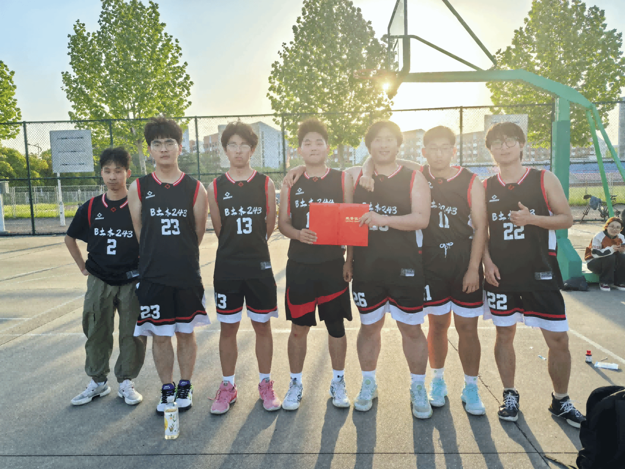 4月20日下午,在决赛场上,冠亚军的对决尤为激烈,你追我赶,比分交替上升。B土木243 、244班联队球员凭借扎实的内线优势、默契的配合频频得分,B土木241、B城市241班联队球员则以灵活的快攻战术予以回应。场边观众热情高涨,欢呼声、加油声此起彼伏,为比赛增添了热烈的氛围。最终,B土木243 、244班联队以28:24险胜,荣获本次新生篮球赛冠军,B土木241、B城市241班联队荣获亚军,D工管241、S工管242班联队在三、四名决赛中以32:22的比分战胜B土木245、B给排水241班联队荣获季军。