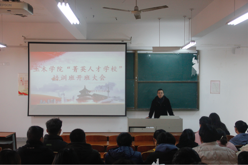 为了提高大学生骨干思想素质、理论水平及工作能力,12月4日下午,土木工程学院在南校区土木馆A201举办了土木工程学院“菁英人才学校”培训班开班大会,会议由院团委副徐佳主持,院党委副书记陈广正出席,菁英人才培训班全体成员参加本次会议。
