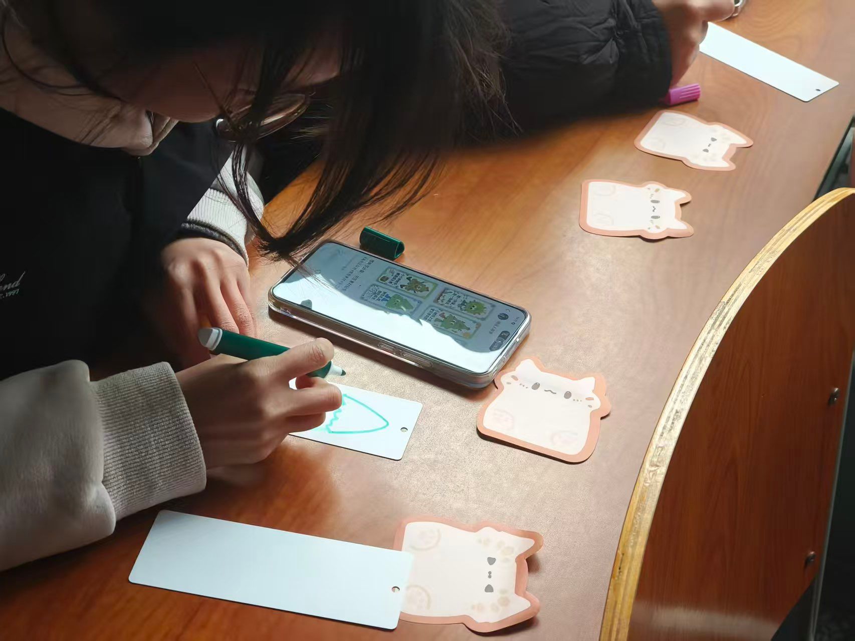 本次活动设置知识问答、植物书签DIY、绿色寄语树牌制作三大特色环节,兼顾知识性、趣味性与实践性,让大家在沉浸式体验中感受自然之美,传递环保初心。知识问答环节率先拉开活动序幕,学团联合会工作人员围绕植树节由来、绿植养护知识、生态文明政策、土木学科绿色低碳建设相关内容设置了单选、多选、抢答等多种题型参与者在答题互动中拓宽知识面。植物书签DIY环节,参与者充分发挥想象力,搭配多彩画笔,或勾勒绿植轮廓,或书写环保寄语,或拼接创意图案,将自然之美与人文情怀融入方寸书签之中。绿色寄语树牌制作环节,参与者用环保材料打造特色树牌并在在树牌上写下“植绿护绿,从我做起”绿色寄语将绿色理念融入文字,将护绿初心付诸行动。