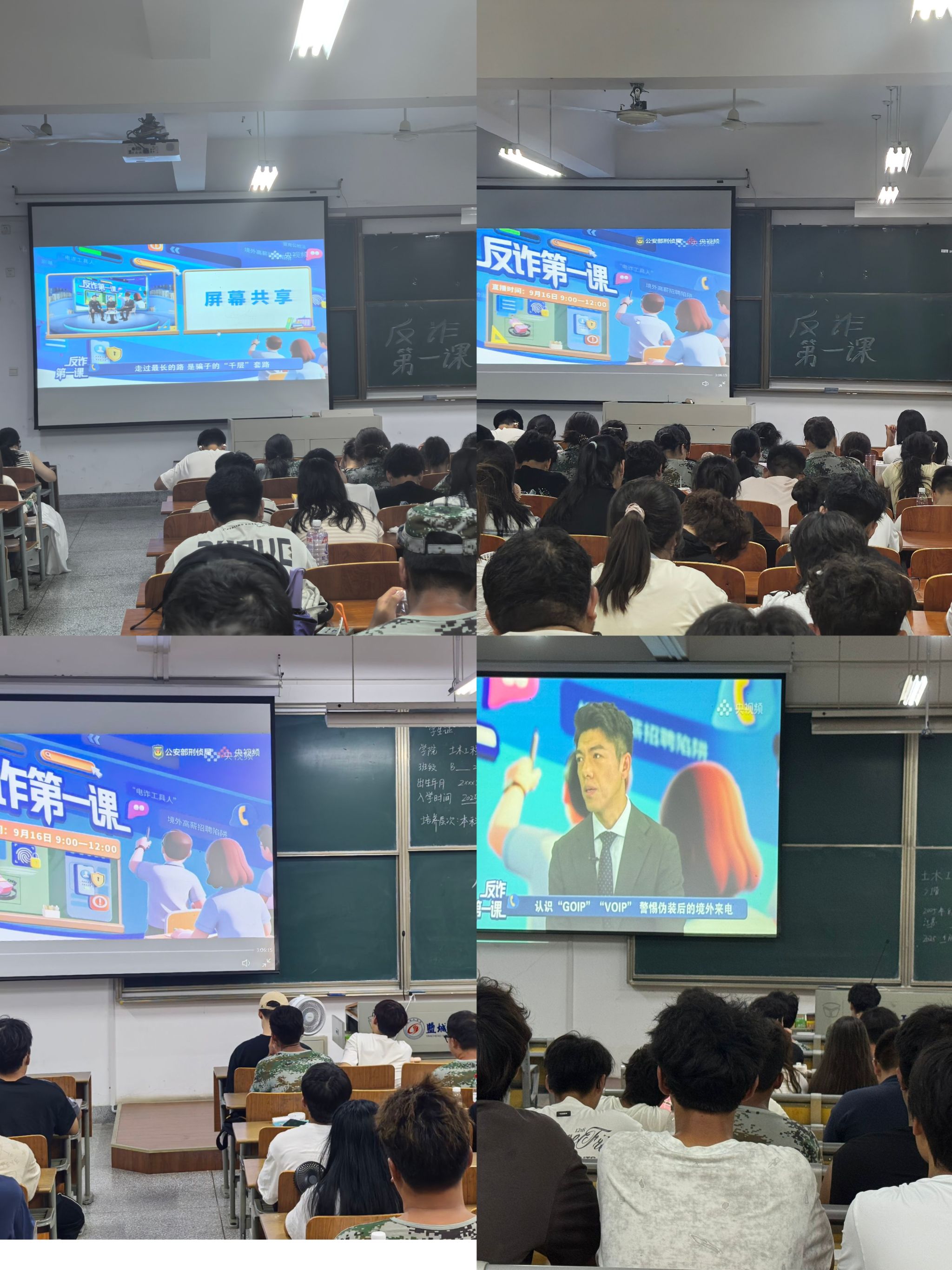9月16日,学院组织以班级为单位,集体同上一堂反诈大课,各班级同步通过公安部刑侦局微信视频号、国家反诈中心微信视频号等官方平台观看“守护青春网络有你”系列活动之2025年秋季学期“大中小学生反诈大讲堂”。本次直播中,民警结合典型案例,生动讲解防骗知识,揭露各类诈骗手段的套路与破绽。同学们认真听讲并将典型诈骗手段牢记于心,进一步深化了对诈骗形式的理解。