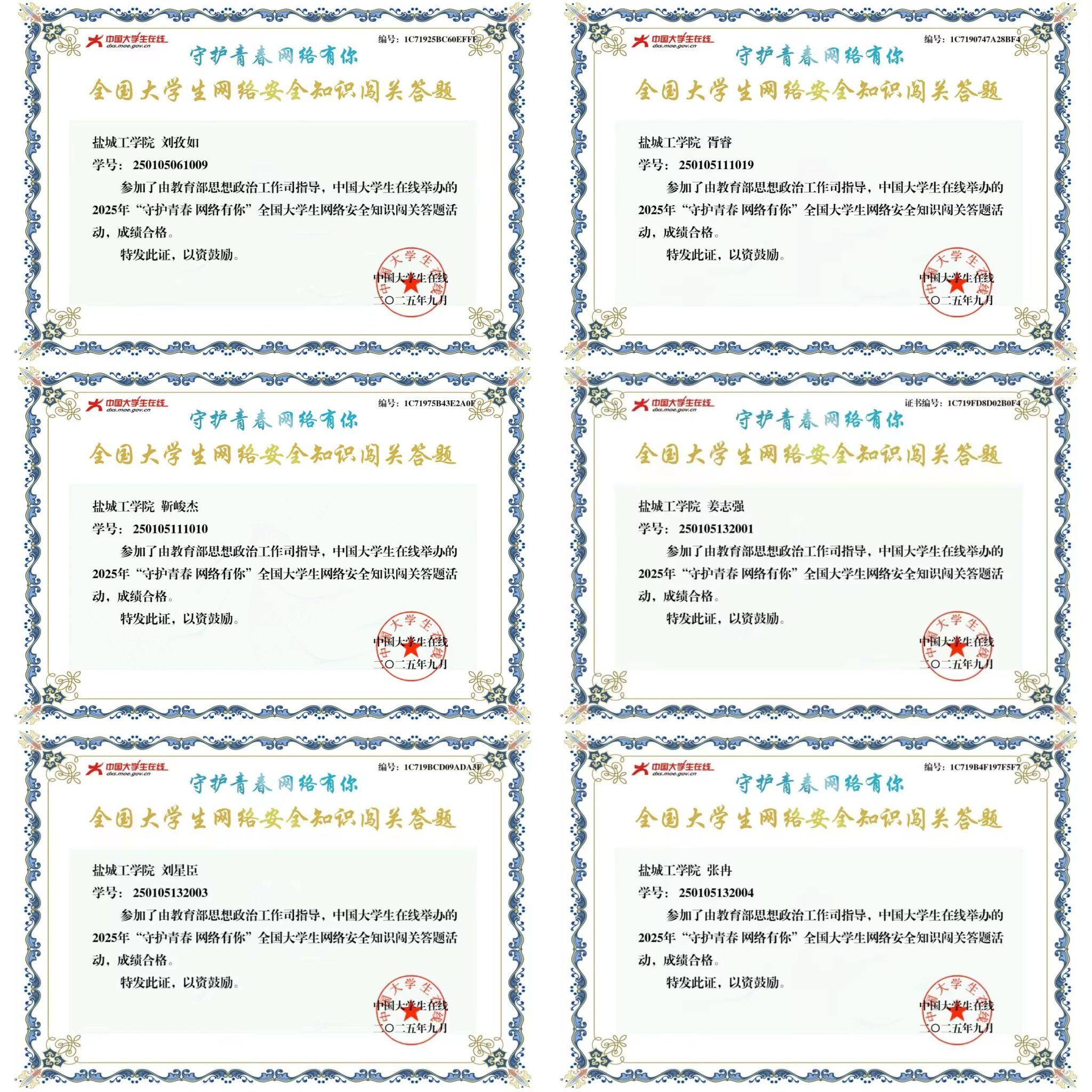 9月15日至21日期间,学院组织各班级召开网络安全主题班会。各班级通过学校网络安全专题教学网站发布的各类网络安全相关的教学课程和资源,引导学生从现实场景出发深刻理解网络安全内涵要义。班会后,各班级组织全体学生通过中国大学生在线官网及微信公众号参与网络安全知识答题,内容涵盖防范网络诈骗、防范非法校园贷、安全使用网络等核心要点。