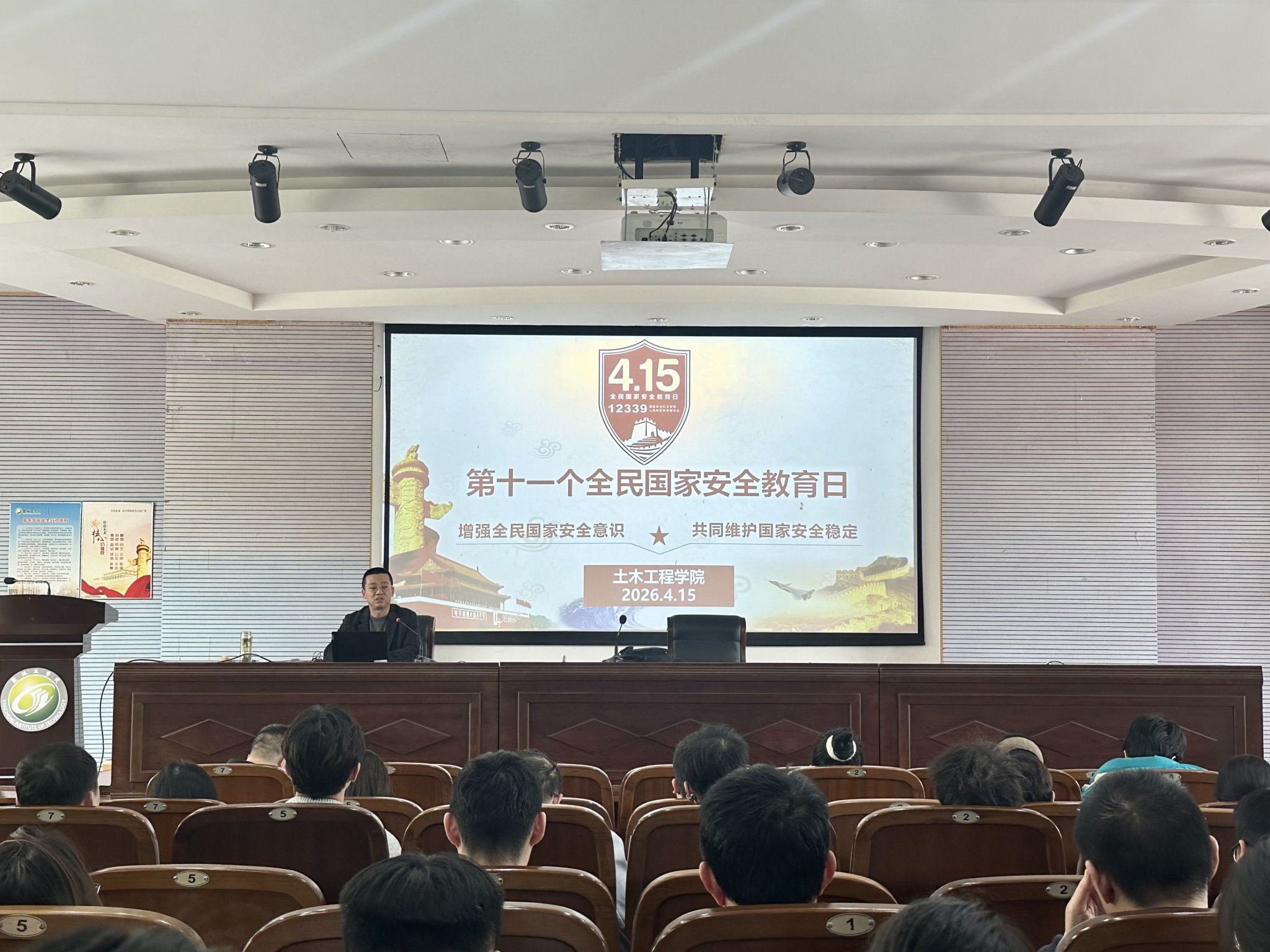 在教师层面,415日下午,学院组织开展国家安全专题集中学习,学院全体教职工参加。学院党委副书记陈广正以“增强全民国家安全意识,共同维护国家安全稳定”为题作辅导讲座,他带领全体教职工系统学习总体国家安全观、国家安全相关法律法规及校园安全工作要求,引导教师深刻认识国家安全的极端重要性,强化底线思维与责任担当,自觉把维护国家安全贯穿到教育教学、科研管理、立德树人全过程。集中学习结束后,全体参会人员共同观看了国家安全微电影《防线》,通过真实案例警示警醒,进一步筑牢思想防线,增强防范化解安全风险的行动自觉。