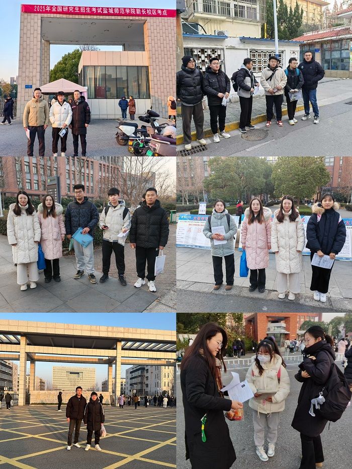 送考老师在盐城工学院希望大道校区、盐城师范学院新长校区、盐城幼儿师范高等专科学校学海路校区、盐城机电高等职业技术学校、盐城市初级中学等五个考点现场反复提醒考生清点必备物品,注意保暖,鼓励同学们放松心态,自信迎考、沉着应考、顺利赢考。学院还为考研学生准备了暖宝宝贴、巧克力、面包等物资,物资上都张贴着“逢考必过”“顺利上岸”等暖心祝福。