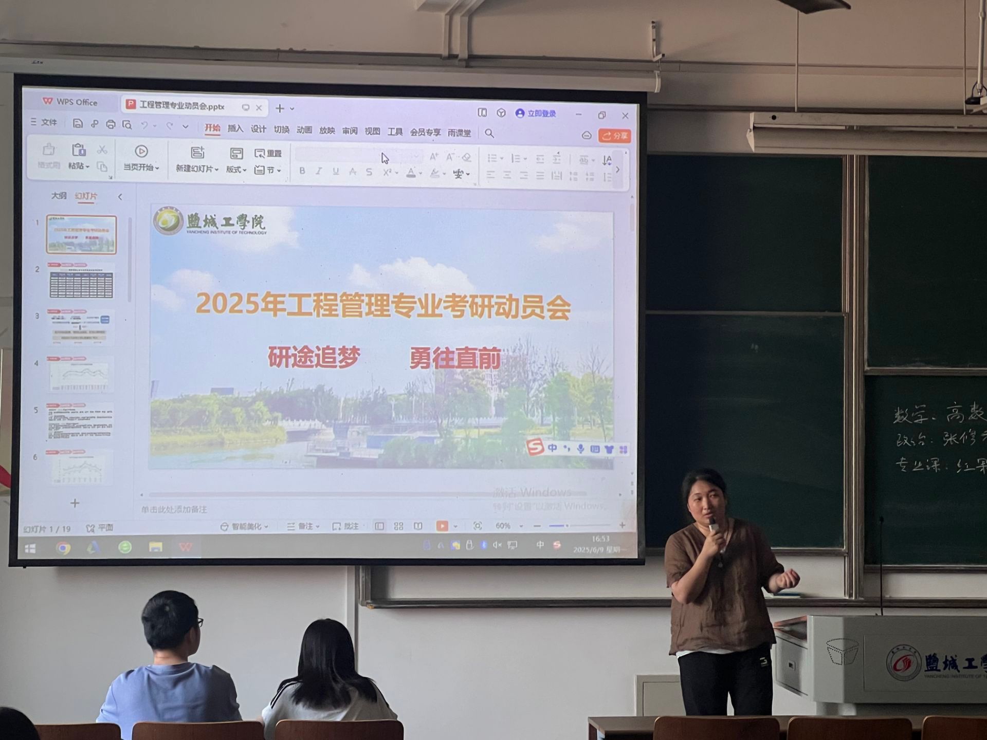 会上,赵海春作考研动员讲话。她首先分析了近年来考研人数的变化趋势以及工程管理专业的考研形势,结合专业发展前景,深入浅出地阐述了读研对于个人综合素质提升和职业发展的重要意义,鼓励同学们坚定考研信心。针对考研复习,她从学习方法、时间规划、心态调整等方面给出了专业且细致的建议。她强调,同学们在备考过程中要合理安排时间,注重基础知识的积累,同时也要关注行业动态,拓宽知识面。