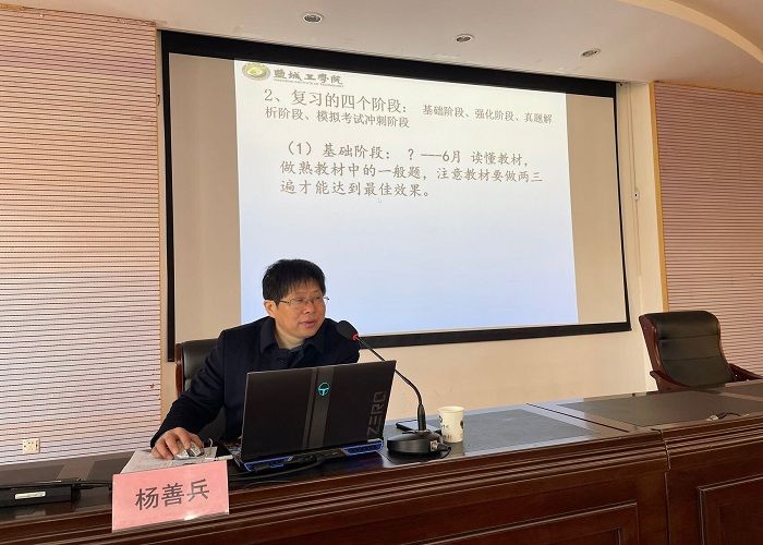 杨善兵作《2024年考研数学高分导学》专题讲座,围绕考研形势、考研动机、科学复习等三个方面进行了细致讲解,就研究生学业目标和就业前景做了详细阐述,提振了同学们的考研热情,引导学生及时认识尽早谋划、提前准备、主动力行的必要性。他从“考纲概况”“如何复习数学”“规范性答题”三个专题,运用深入浅出的方式,结合真题为同学们理清了考研数学的复习脉络,制定详细规划,改进学习方法,做到有的放矢。