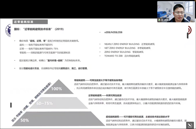 王进首先详细介绍了邵泽彪的主要实践工作与经验成就。邵泽彪指出,气候变化是人类面临的全球性问题,随着各国二氧化碳排放,温室气体猛增,对生命系统形成威胁。在这一时代背景下世界各国以协约的方式减排温室气体,我国由此提出碳达峰和碳中和的目标。讲座主要围绕绿色建筑发展背景、绿色建筑常用技术、绿色建筑案例等方面内容。在提问环节,邵老师针对同学提问的绿色建筑的成本、未来建筑是否更偏向智能化和数字化、在考研选择研究方向上是否需要更偏向智能化数字化、光伏技术能不能直接变成建筑构件、绿色建筑在国外的利用率、绿色建筑的后期养护等问题分享了自己的见解和建议。