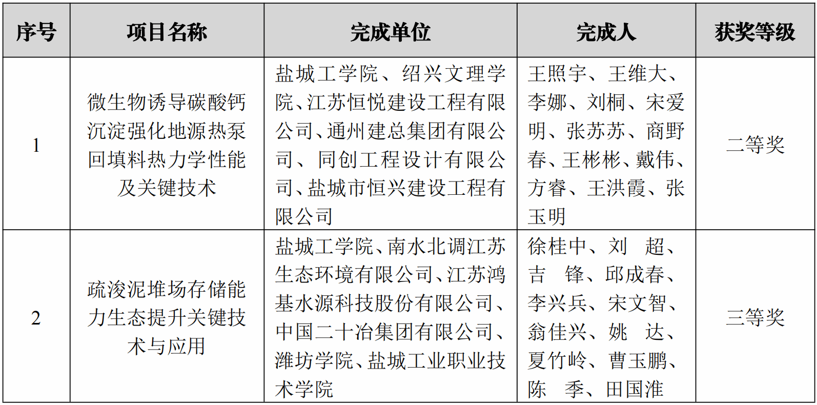 王照宇教授课题组申报《微生物诱导碳酸钙沉淀强化地源热泵回填料热力学性能及关键技术》荣获2025年度中国商业联合会科技进步奖二等奖;徐桂中教授课题组申报《疏浚泥堆场存储能力生态提升关键技术与应用》荣获2025年度中国商业联合会科技进步奖三等奖。