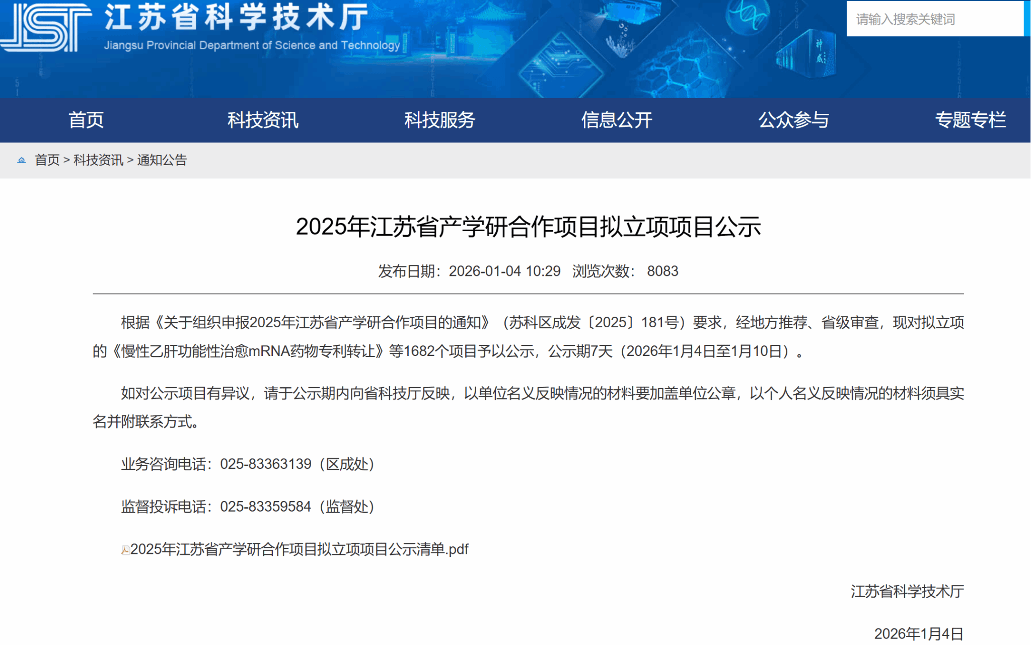 日前,江苏省科技厅公示了2025年江苏省产学研合作项目拟立项名单。