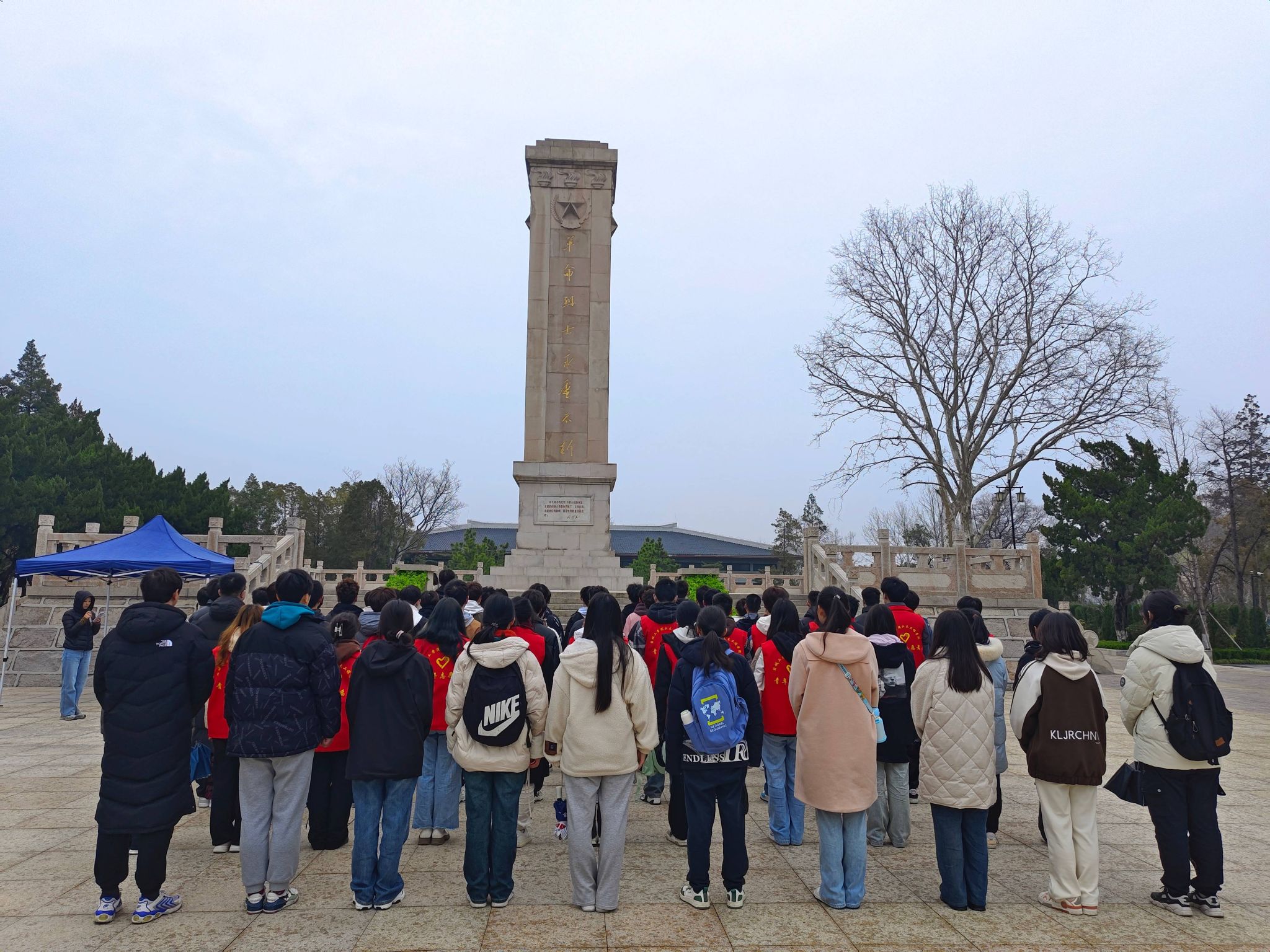 在高耸矗立的革命烈士纪念碑前,大家整装肃立,神情庄重,鞠躬致敬,垂首默哀。师生向革命烈士敬献鲜花,寄托哀思,深切缅怀革命先烈的丰功伟绩。随后,全体人员来到革命烈士纪念馆,跟着讲解员的脚步,了解革命历史,感受当时炮火中热血与信仰并存的红色印记,学习先辈们大无畏的革命精神和艰苦奋斗精神。