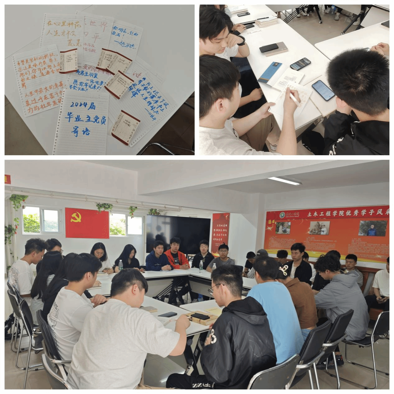 活动中,团员代表向毕业生党员表达美好祝福并提问,毕业生党员向团员分享经验,并写下寄语。这些寄语内容丰富多彩,既有对学弟学妹们学习上的建议,也有对生活上的关心与鼓励。团员代表纷纷表示将向优秀的毕业生党员看齐,坚定理想信念,传承铁军土木精神,志存高远、接续奋斗,不断超越自我、实现人生价值。