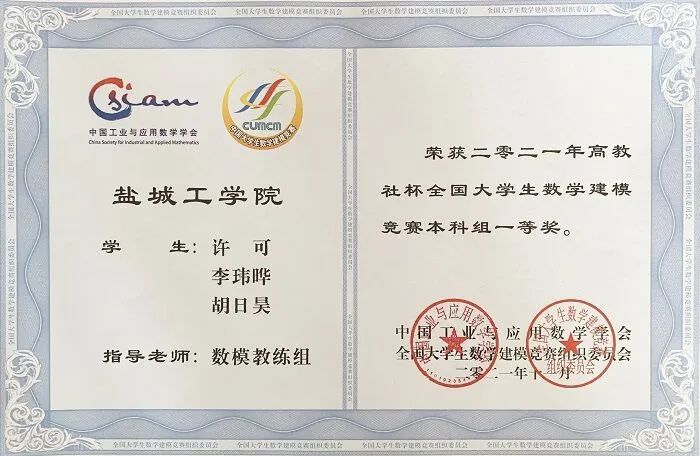 获奖情况:获校一等奖学金5次、二等奖学金2次、三等奖1次,校三好学生4次,2023年全国大学生数学竞赛一等奖,2023年全国大学生英语竞赛三等奖,2022年全国大学生英语竞赛二等奖,2021年全国大学生英语竞赛三等奖,2022年全国大学生英语翻译大赛三等奖,2023年江苏省数学竞赛一等奖,2022年江苏省数学竞赛二等奖,2021年江苏省数学竞赛三等奖,2023年连云港籍优秀学子奖学金,2023年盐城市“黄海明珠”奖学金等奖项。
