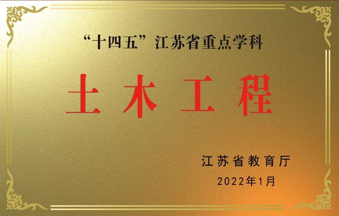本专业两次通过土木工程专业评估(认证),为国家级一流本科专业建设点、国家特色专业建设点、教育部“卓越计划”试点专业、江苏省品牌专业、江苏省课程思政示范专业、江苏省“卓工计划”2.0专业、“十四五”江苏省重点学科。