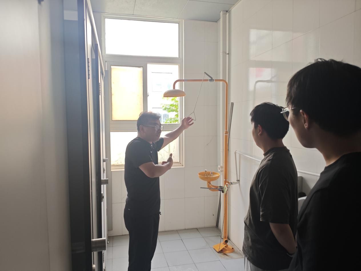 会后,所有人员参加了实验室安全演练,操练了灭火器和灭火毯的使用方法;具体了解了化学试剂溅泼的应急处理流程。