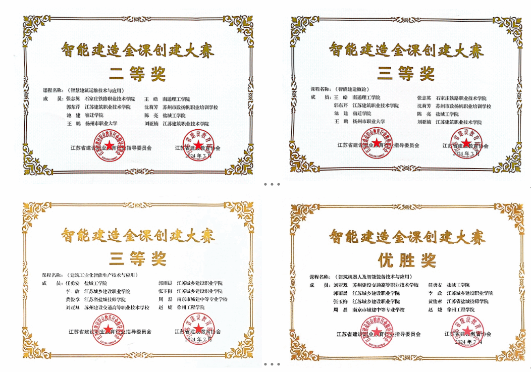 此外,培训期间,江苏省建设教育协会联合江苏省建设职业教育行业指导委员会共同举办了“智能建造金课创建大赛”活动,陈亮、任勇安老师荣获金课创建大赛二等奖1项、三等奖2项、优胜奖1项。