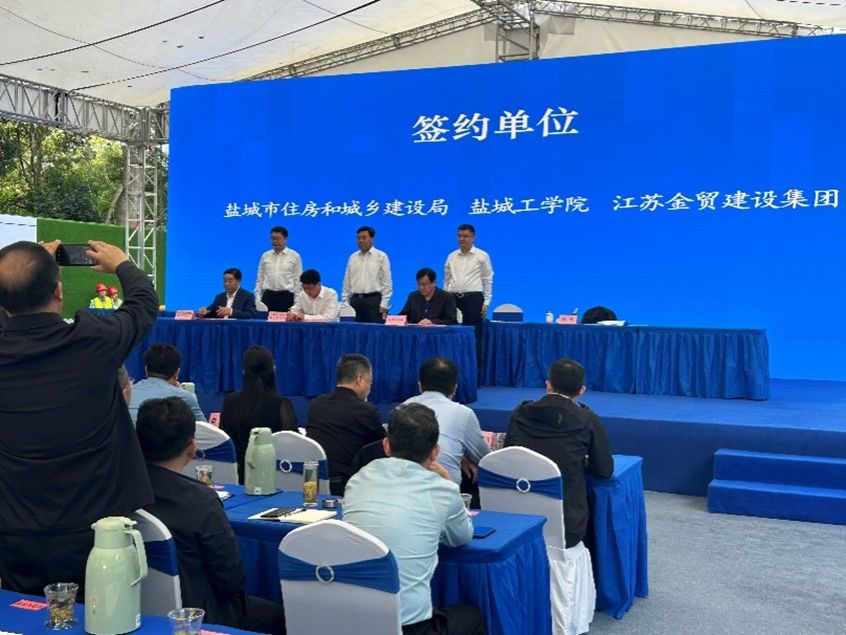 土木工程学院受邀参加会议。院长王照宇从专业历程、科研成果、社会服务等方面全面介绍了我校智能建造专业方向的建设思路、专业定位、培养目标、产教融合等情况,扩大了我校高水平应用型人才培养示范效应。会上,王照宇代表学校与盐城市住房和城乡建设局、江苏金贸建设集团签订政校企三方合作协议。工程管理专业负责人刘宏伟教授,建筑系主任王进教授和青年教师孟逊等参加。