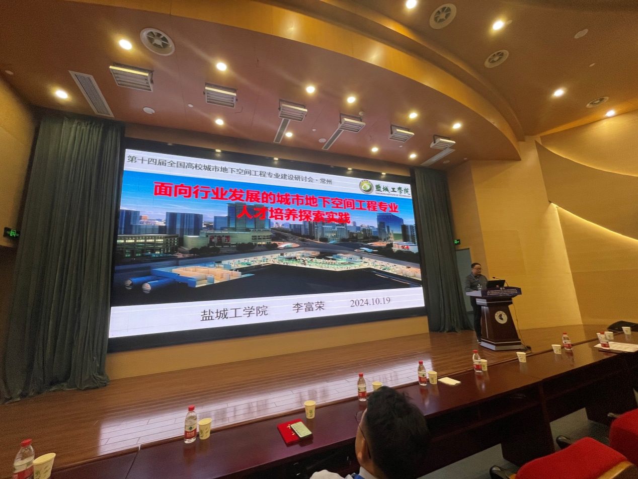 本次研讨会以“产教融合背景下城市地下空间工程专业人才培养体系构建”为主题,李富荣作题为“面向行业发展的城市地下空间工程专业人才培养探索实践”的大会报告,介绍了我校城市地下空间工程专业基于行业引领、校际协同、数智赋能,在专业发展、教学资源及平台团队建设、人才培养等方面取得的成绩。