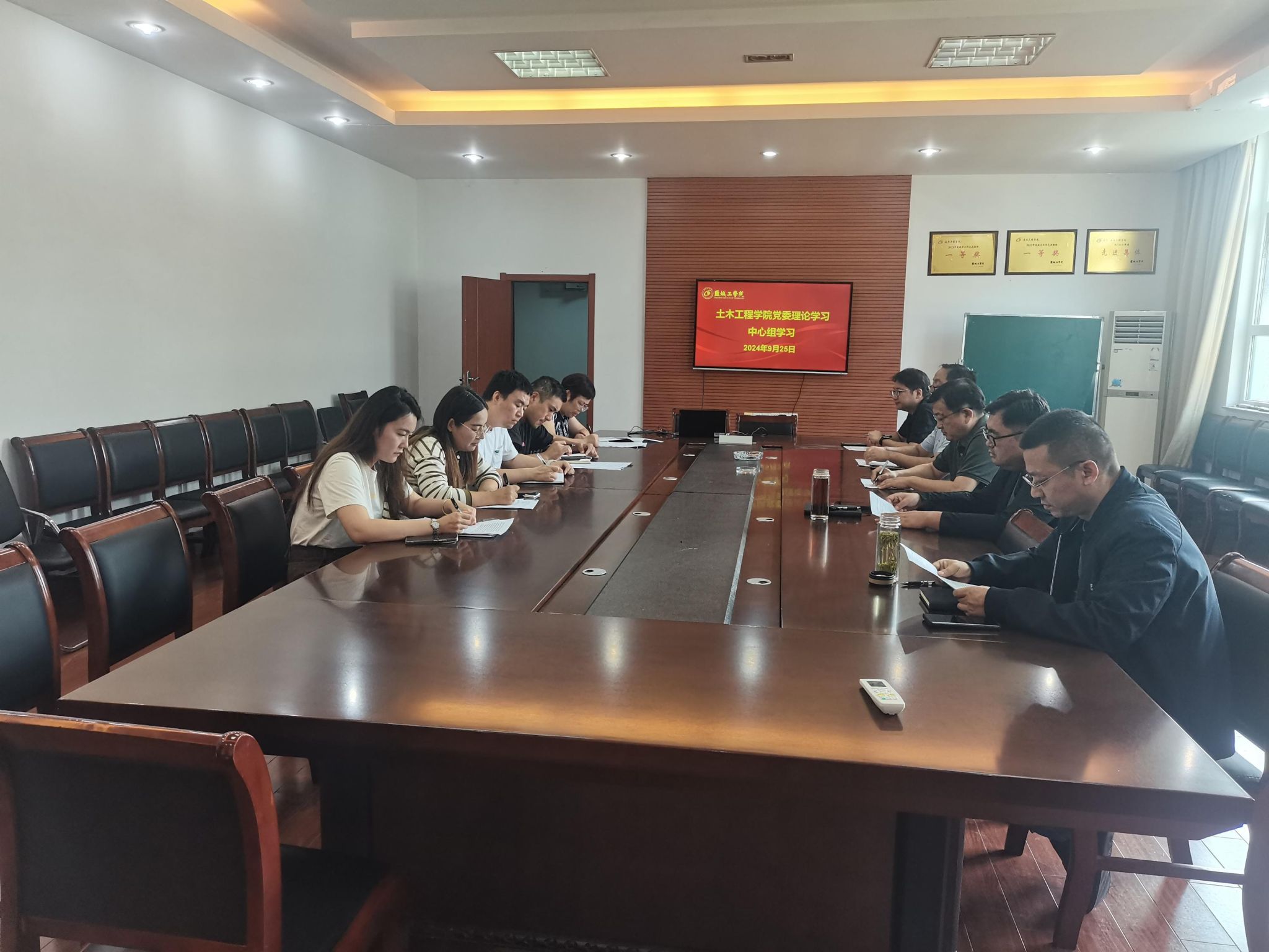 9月25日下午,土木工程学院党委理论学习中心组在土木馆A206会议室召开集体学习会,学习贯彻党的二十届三中全会精神、习近平总书记关于全面从严治党、坚持不懈抓好作风建设的重要论述。党委书记谷伟主持,理论学习中心组全体成员参加。