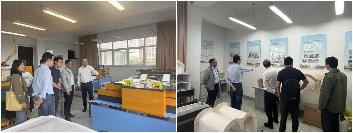 活动第一阶段,江苏省地下空间学会与我校土木工程学院举行了共建科普教育基地签约、揭牌仪式。仪式后,李奥介绍了学会科普工作情况。黄俊为我校城市地下空间工程专业学生作主题为《思变向新 争做存量时代基础设施的“地下工作者”》的报告。报告中,黄俊围绕国家战略科学技术需求,介绍了地下空间历史发展的经验,分享了他20多年来地下空间行业经历以及对地下空间产业的理解和思考。报告结束后,黄俊还与学生进行了互动交流,鼓励同学们学好专业知识,参与到地下空间开放与利用中来,并向我校学生赠送了《江苏省地下空间发展报告2023》蓝皮书。黄俊一行参观了土木工程学院地下空间模型和模型竞赛作品。