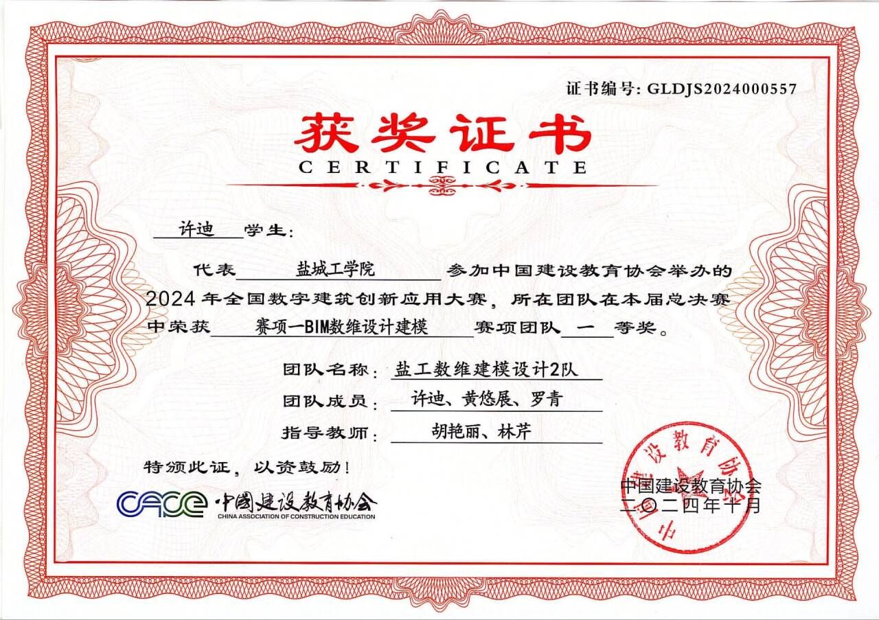 本次大赛共设3个赛项,分别为BIM数维设计建模赛项、数字施工项目管理综合应用赛项以及建设工程计量与计价应用赛项,共计报名480所院校,2855支团队,参与师生8874人。土木工程学院高度重视本次大赛,积极参与,共选拔5支代表队参赛,通过系统集训、模块精研,在全国至尊挑战赛中获一等奖4项、三等奖1项,在备战全国总决赛过程中,师生全力备战,参赛学生的专业技能得到了全面深化和显著提升,最终在全国总决赛中取得优异成绩。