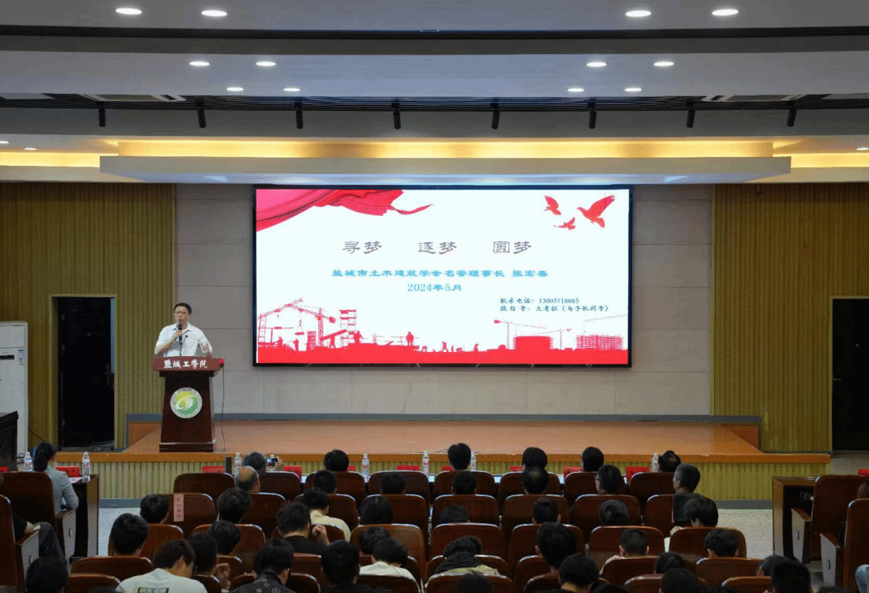 5月28日下午,在希望大道校区机械工程馆报告厅,学校邀请盐城市土木建筑学会名誉理事长、盐城工学院兼职教授、盐城市住房和城乡建设局原党组书记、局长张宏春作关于毕业生就业与成人成才教育“寻梦、逐梦、圆梦”主题报告。