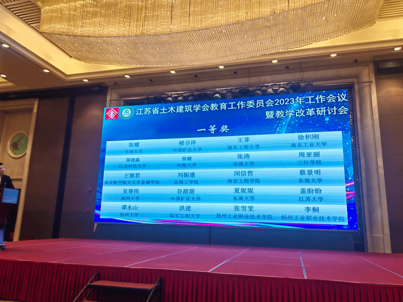 会议对首届江苏省高等学校土木建筑教育突出贡献奖和第四届江苏省高等学校土木工程专业教学名师进行了表彰。土木学院荀勇教授荣获首届江苏省高等学校土木建筑教育突出贡献奖,吴发红教授荣获第四届江苏省高等学校土木工程专业教学名师,充分彰显了土木学院教师在省内高校的知名度和认可度。