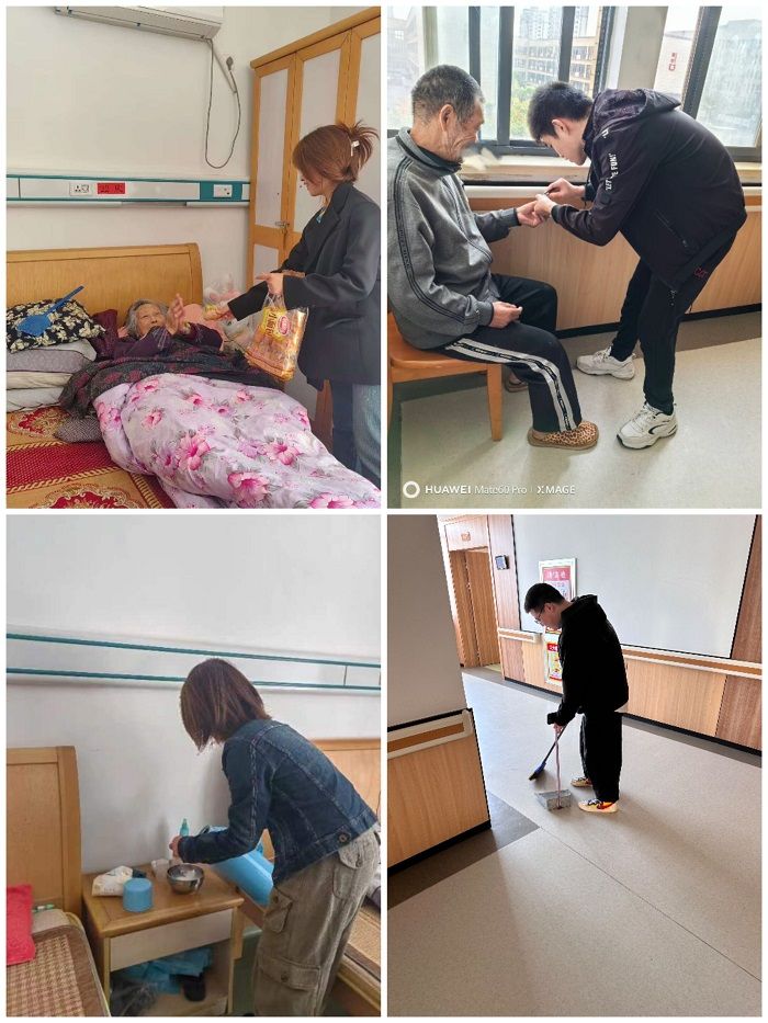 活动期间,根据分工安排,有的志愿者陪老人们晒晒太阳,聊天谈心,关心老人们的身体情况;有的志愿者帮助老人们整理内务,打扫卫生;还有的志愿者为老人们修剪指甲,分享了零食。整个院子里充满着欢声笑语,营造了浓厚的节日氛围。