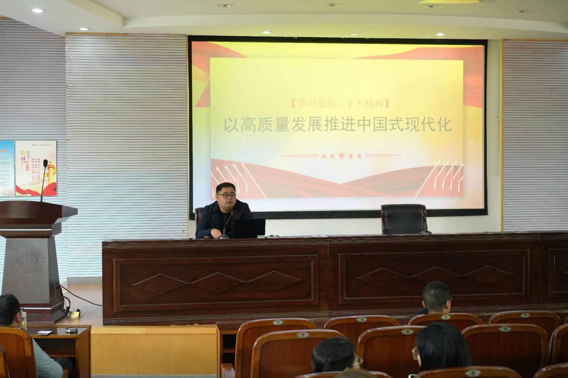 为全面系统深入学习习近平新时代中国特色社会主义思想和党的二十大精神,10月11日下午,土木工程学院在南校区土木馆报告厅组织开展“以高质量发展推进中国式现代化”专题学习。学院党委书记谷伟领学,全体教职工参加。