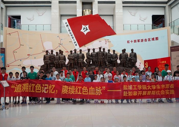 为弘扬铁军精神,拓展大学生“一站式”社区育人功能,7月27日下午,我校“砼心苑”一站式学生社区暑期实践团夏唯壹、高洋等志愿者带领如皋市石南社区“明日之星”爱心暑托班的孩子们一行50余人到中国工农红军第十四军纪念馆开展主题为“追溯红色记忆,赓续红色血脉”的暑期社会实践活动。