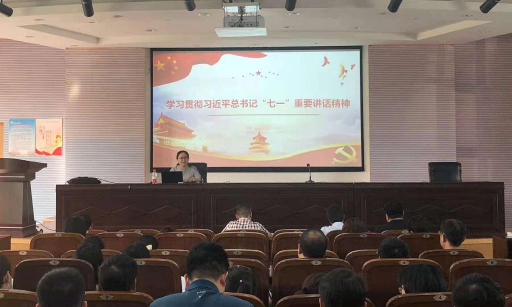 学院为激发教职工学习习近平总书记“七一”重要讲话精神热潮,推动“七一”重要讲话精神入脑入心、落实落地,邀请马克思主义学院副院长赵迎华博士为全院教职工作专题讲座。赵迎华主要从习近平总书记“七一”重要讲话精神的重大意义、逻辑框架以及如何把学习贯彻习近平总书记重要讲话精神作为一项重要的政治任务抓紧抓好等三个方面展开,围绕“实现中华民族伟大复兴”这一主题,从五个庄严宣告、选择中国共产党的必然性、四个伟大成就、三大丰功伟绩、九个必须、三个不负、一个号召等七个方面全面阐释了习近平总书记“七一”重要讲话精神内涵。她号召土木学院全体教职员工要加强理论学习,弘扬光荣传统、赓续红色血脉。