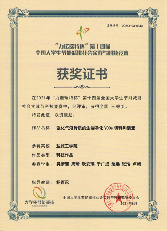 近日,由教育部高等学校能源动力专业教学指导委员会指导、全国大学生节能减排社会实践与科技竞赛委员会主办、山东大学承办的第十四届全国大学生节能减排社会实践与科技竞赛决赛在济南落下帷幕,我校共斩获三等奖5项,并获优秀组织奖。
