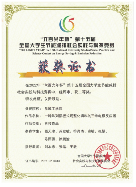 1 | 环境学院 | 一种阵列插板式规整化填料的三维电极反应器 | 顾天津 | 刘本志 张磊 王敏 | 二等奖 |
