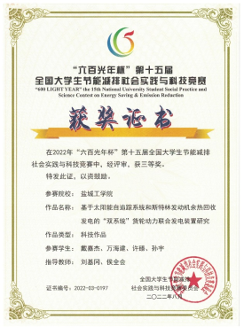 近日,由教育部高等学校能源动力类专业教学指导委员会指导、全国大学生节能减排社会实践与科技竞赛委员会主办的第十五届全国大学生节能减排社会实践与科技竞赛决赛在天津大学举行。经过为期三天的激烈角逐,我校共获二等奖1项、三等奖4项,学校获“优秀组织奖”。