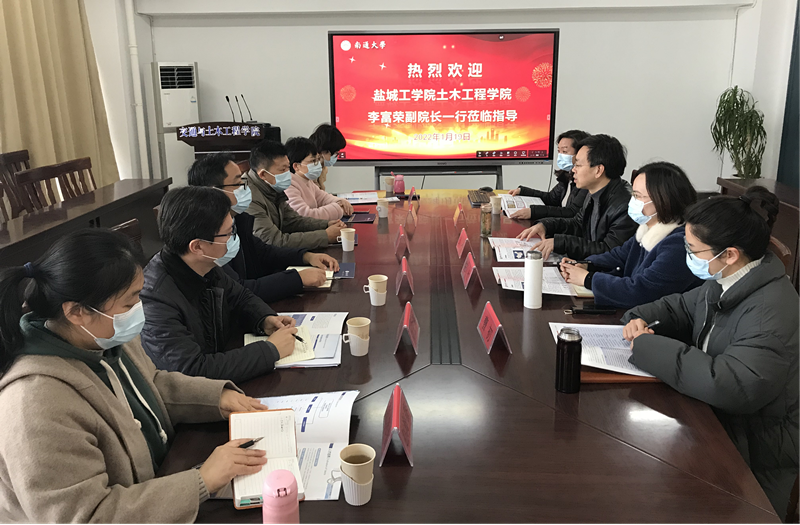 1月19日,土木工程学院副院长李富荣带领工程管理专业教师一行6人赴南通大学调研工程管理专业评估(认证)工作。南通大学交通与土木工程学院院长施佺,副院长陈敏,工程管理专业系主任许薇、教务秘书曹初热情接待李富荣一行,并表示热烈欢迎。