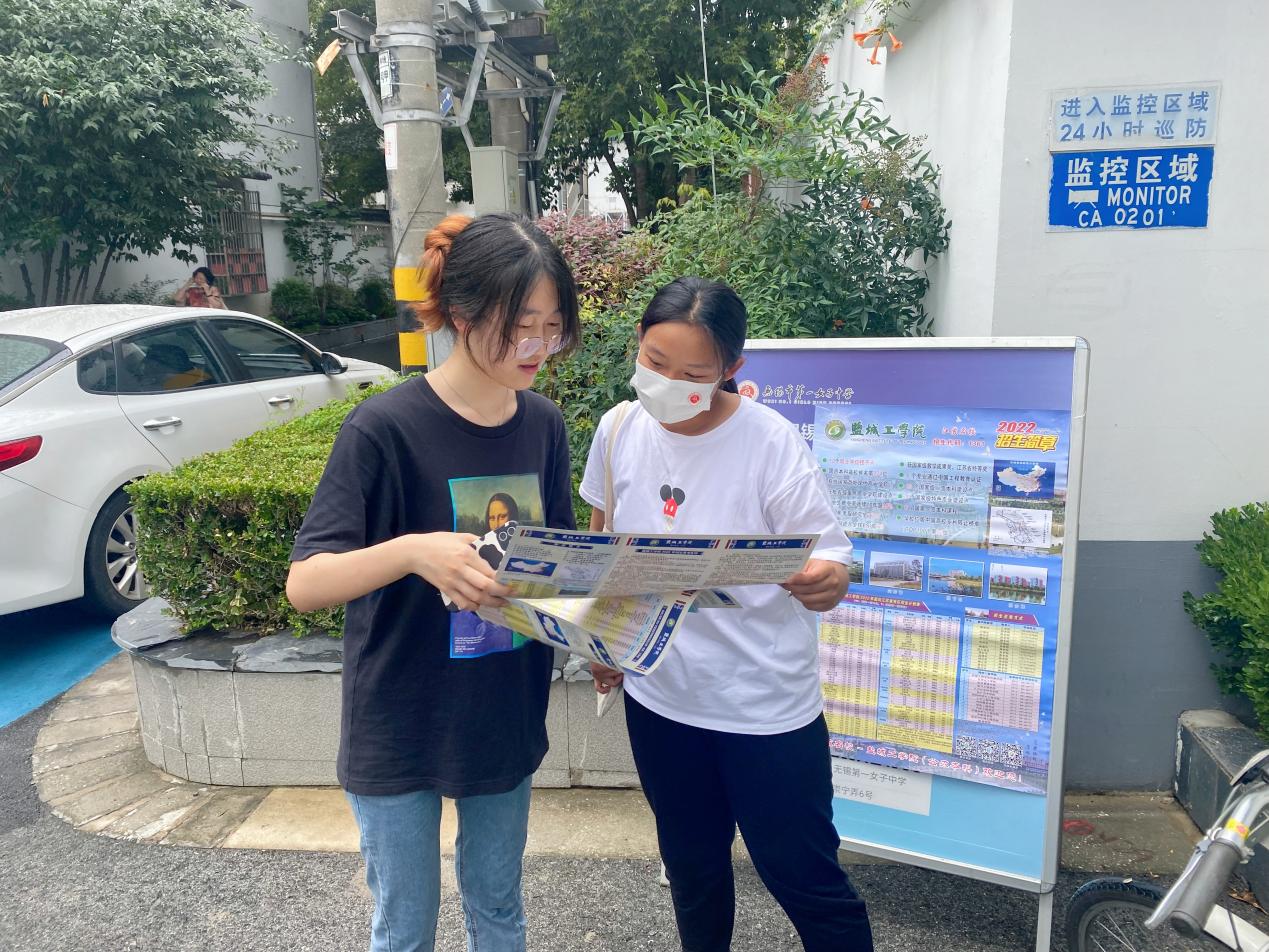 本次社会实践活动根据当地防疫政策,采取了“线下点对点”和“线上1+1”相结合的宣传方式,先后在江苏省宜兴第一中学、江苏省太湖高级中学、无锡市市北高级中学等40所高中校园内进行回访和宣传。团队成员们首先前往高中母校的办公室看望辛勤工作的老师们,和老师谈论了在盐城工学院的学习生活,谈话之余成员们还帮助老师整理办公室,为辛苦耕耘的老师们送去温暖。随后,成员们在各学校指定的地点进行“线下点对点”宣传,在招生点张贴我校招生宣传海报、发放招生宣传资料等,向同学和家长们介绍了盐城工学院的办学特色、专业设置、考研情况等,讲述在大学生活的亲身感受,使同学们对大学怀有憧憬之情,并为同学们送上了美好的祝愿。在“线下点对点”宣传结束后,成员们利用新媒体开展了“线上1+1”个性化服务,通过QQ、微信等平台为有意向报考盐城工学院的学生提供个性化的学业报考指导,以及大学生涯规划服务。以回母校宣传为起点,与学弟学妹们保持持续性沟通和关心辅导,帮助其完成高考志愿填报,加强盐工学子与高中母校的联系。