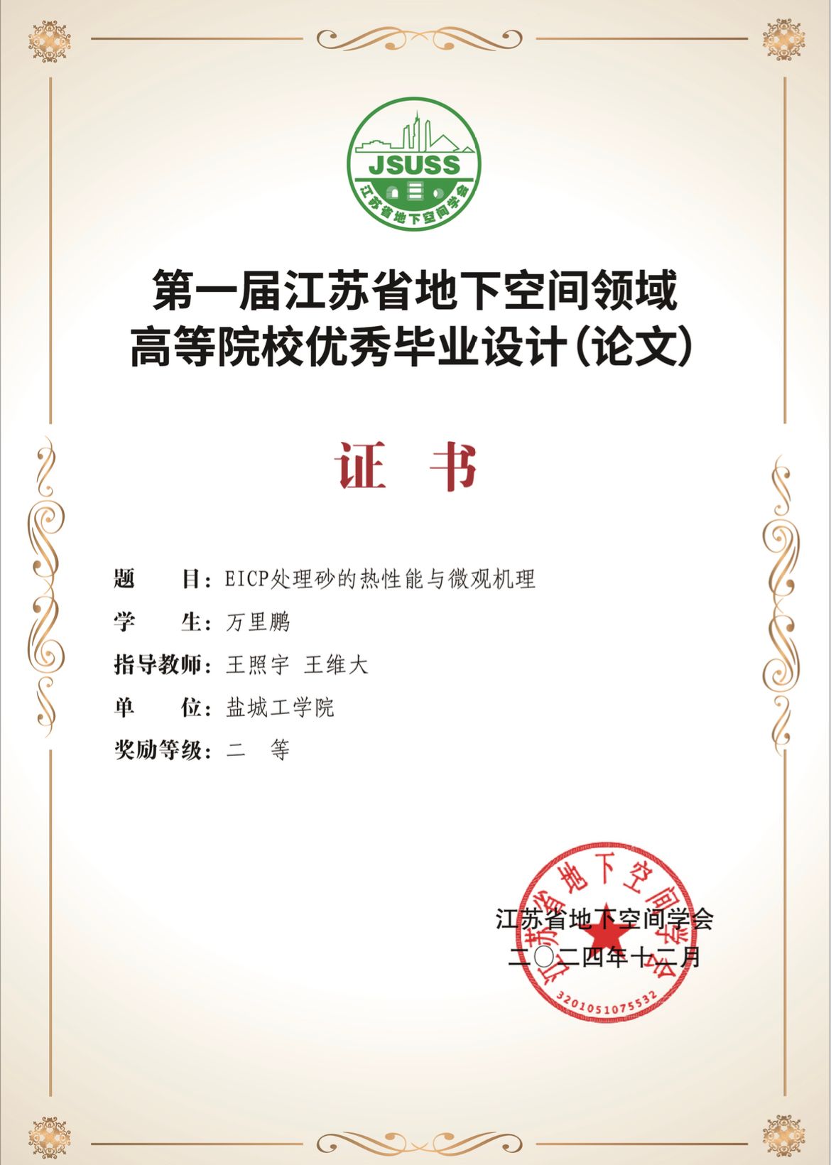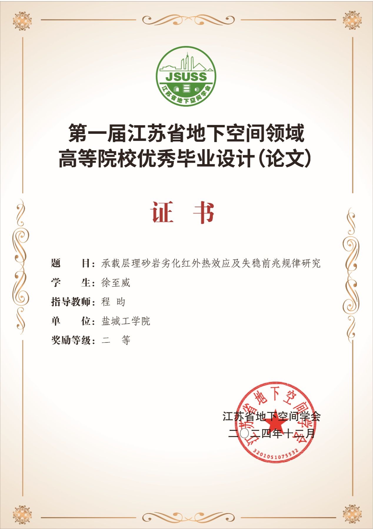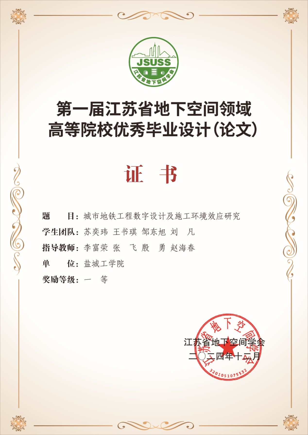 在本次评选中,由土木工程、城市地下空间工程、工程管理专业学生组成的团队(指导老师:李富荣、张飞、殷勇、赵海春)获优秀毕业设计团队一等奖,城市地下空间工程专业王书琪(指导老师:殷勇)、万里鹏(指导老师:王照宇)和徐至威(指导老师:程昀)分别获个人优秀毕业设计(论文)一等奖、二等奖、二等奖,获奖数量位居省内高校前列。