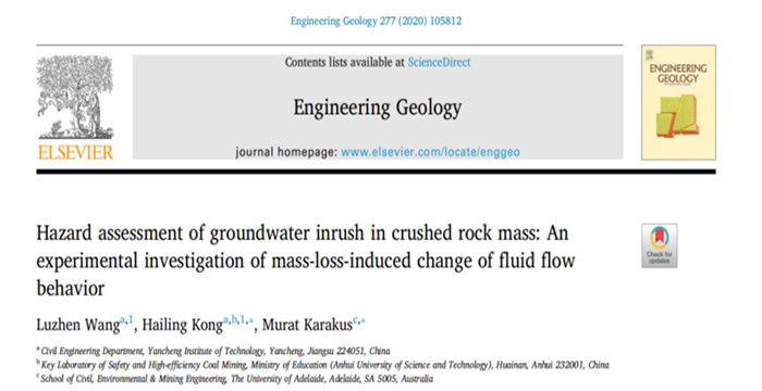 近日,在国家自然科学青年基金(11502229)资助下,我校土木工程学院王路珍副教授的研究论文《Hazard assessment of groundwater inrush in crushed rock mass: An experimental investigation of mass-loss-induced change of fluid flow behavior》(Wang et al., Eng. Geol. 2020, 277, 105812)在地球科学领域国际公认顶级期刊《Engineering Geology》上发表,该期刊2020年被列入中科院一区,2019年影响因子4.779,具有很高的行业认可度。论文针对岩土工程领域常见的破碎地质构造突水事故,提出由于破碎岩体渗透过程中存在颗粒迁移和质量流失,破碎岩体中流体流态的转变行为就是引发突水的重要原因。论文中,王路珍副教授首次提出可利用质量流失率对岩土工程中破碎岩体渗流突变的危险性进行评估,该方法可广泛应用于采矿工程、隧道工程等领域的突水危险性评估。