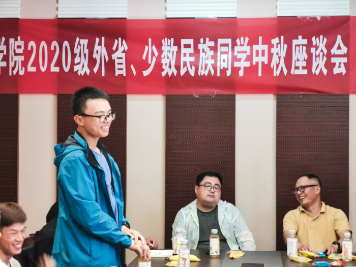 10月1日下午,土木学院在建军路校区知行楼303会议室,举行 “庆国庆•贺中秋”外省和少数民族同学座谈会,院党委副书记谷伟,学工办主任刘波,2020级辅导员姚一凡、徐传洪及2020级外省和少数民族同学代表30余人参加。