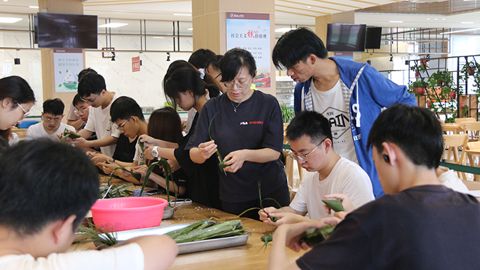 6月14日上午,在希望大道校区教工食堂,土木学院组织外省学生开展“粽叶飘香迎端午 传统文化润心田”端午节主题活动。