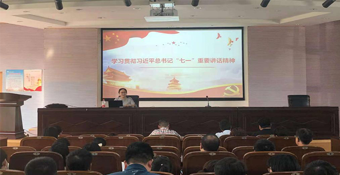 学院为激发教职工学习习近平总书记“七一”重要讲话精神热潮,推动“七一”重要讲话精神入脑入心、落实落地,邀请马克思主义学院副院长赵迎华博士为全院教职工作专题讲座。赵迎华主要从习近平总书记“七一”重要讲话精神的重大意义、逻辑框架以及如何把学习贯彻习近平总书记重要讲话精神作为一项重要的政治任务抓紧抓好等三个方面展开,围绕“实现中华民族伟大复兴”这一主题,从五个庄严宣告、选择中国共产党的必然性、四个伟大成就、三大丰功伟绩、九个必须、三个不负、一个号召等七个方面全面阐释了习近平总书记“七一”重要讲话精神内涵。她号召土木学院全体教职员工要加强理论学习,弘扬光荣传统、赓续红色血脉。