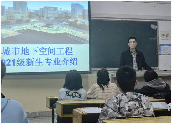 殷勇对B城市211班的新生介绍了城市地下空间工程的专业背景、发展趋势、行业发展前景、课程体系和师资力量等。他提到城市地下空间工程能够满足高速增长的城市发展需求,能够解决城市人口、环境、资源三大危机,医治“城市综合症”。他提醒同学们要珍惜美好的大学时光,鼓励大家积极参加学科竞赛来不断提升自己。
