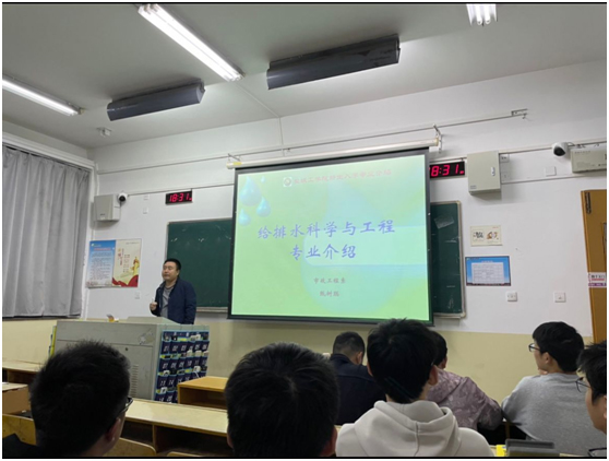 甄树聪为B给排水211-212班的新生们首先介绍了盐城工学院给排水科学与工程专业两次通过给排水专业评估,拥有较多的专业经验,获得了国际的认可。而后详细讲解了该专业的所属学科门类、发展历程、课程要求、考研方向和就业情况和发展趋势,提醒同学们尽早做好职业规划,为美好的未来而努力奋斗。