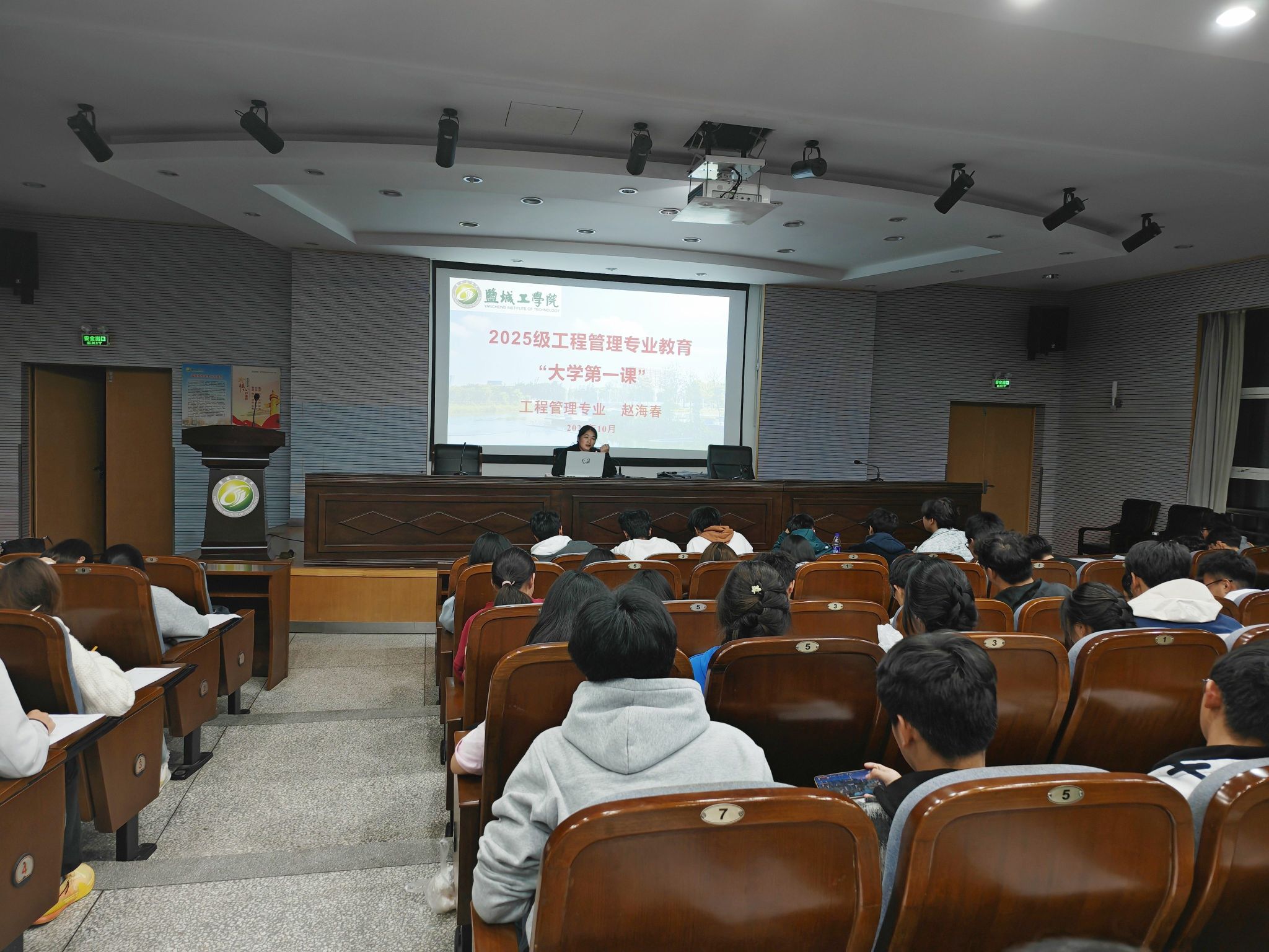 为帮助2025级新生深入理解工程管理专业内涵,明确学习目标,做好职业生涯规划,10月23日晚上,土木工程学院联合“砼心苑”一站式学生社区在土木馆报告厅开展新生专业思想教育,工程管理系主任赵海春老师作专题报告,班级辅导员和全体工程管理专业新生参加。