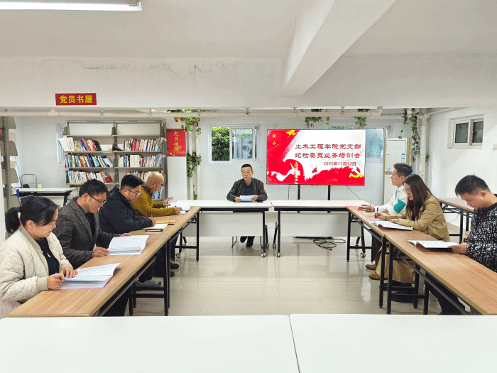 为进一步严格党支部组织生活纪律,提升各党支部纪检委员的履职能力,11月12日下午,在“砼心苑”一站式社区党建活动室,土木工程学院召开2025年秋学期党支部纪检委员业务培训会。会议由院党委副书记、纪检委员陈广正主持,各党支部纪检委员参加。