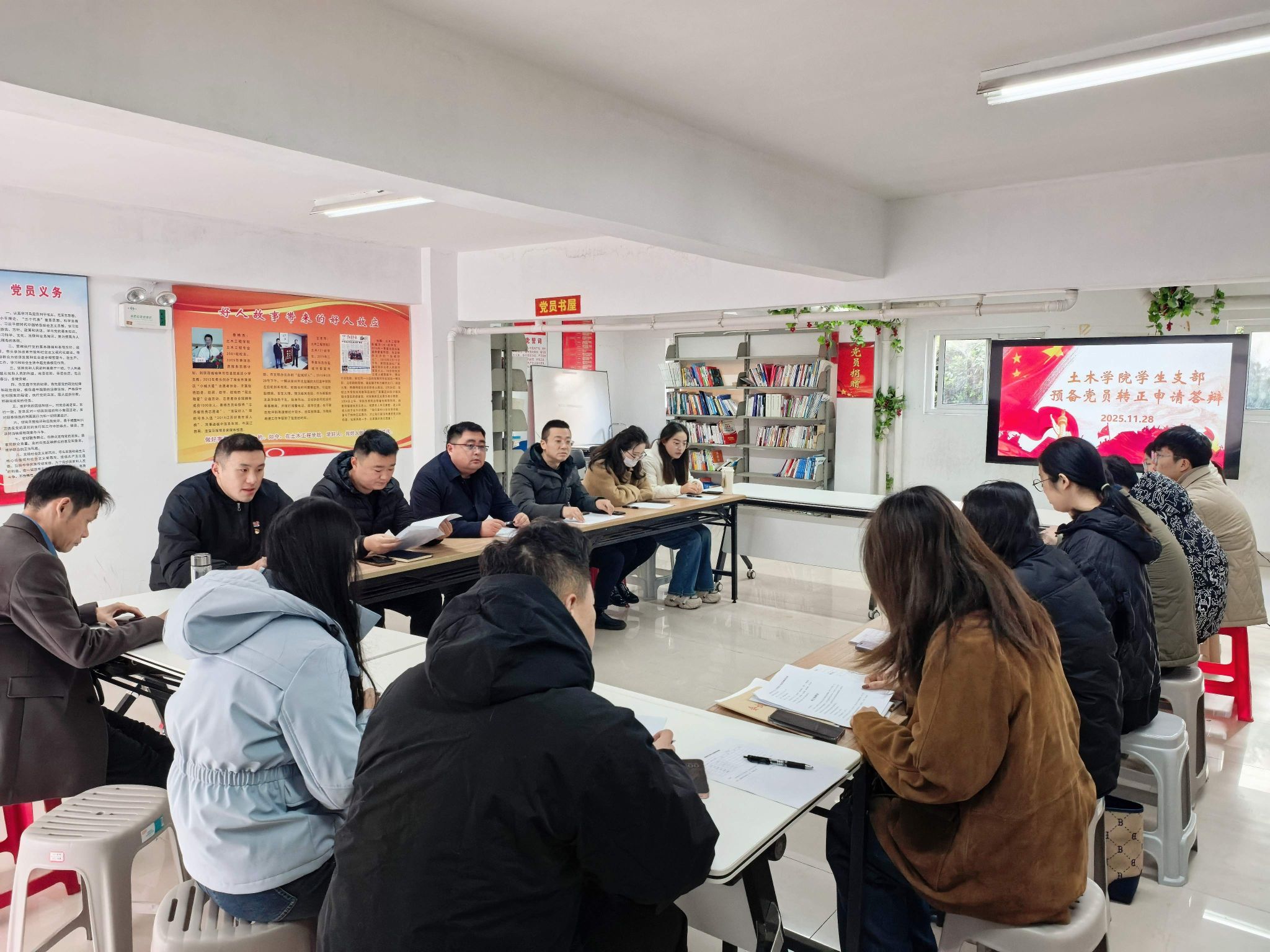 11月28日上午,土木工程学院在“砼心苑”一站式学生社区党建活动室举行预备党员转正答辩会,学院党委书记谷伟、学院党委副书记陈广正、学生党支部书记、支部教师党员及6名预备党员参会。
