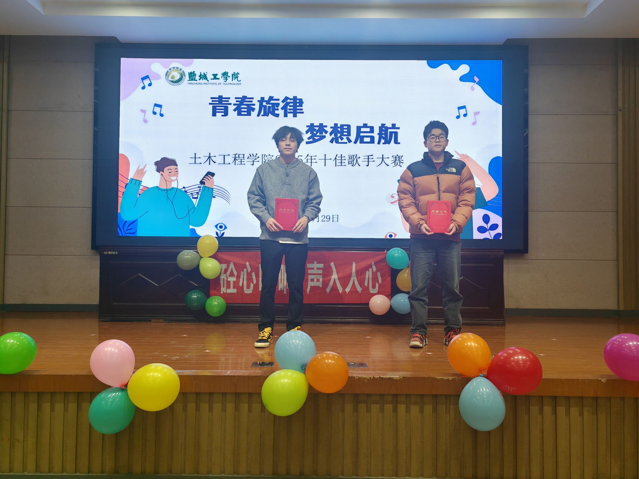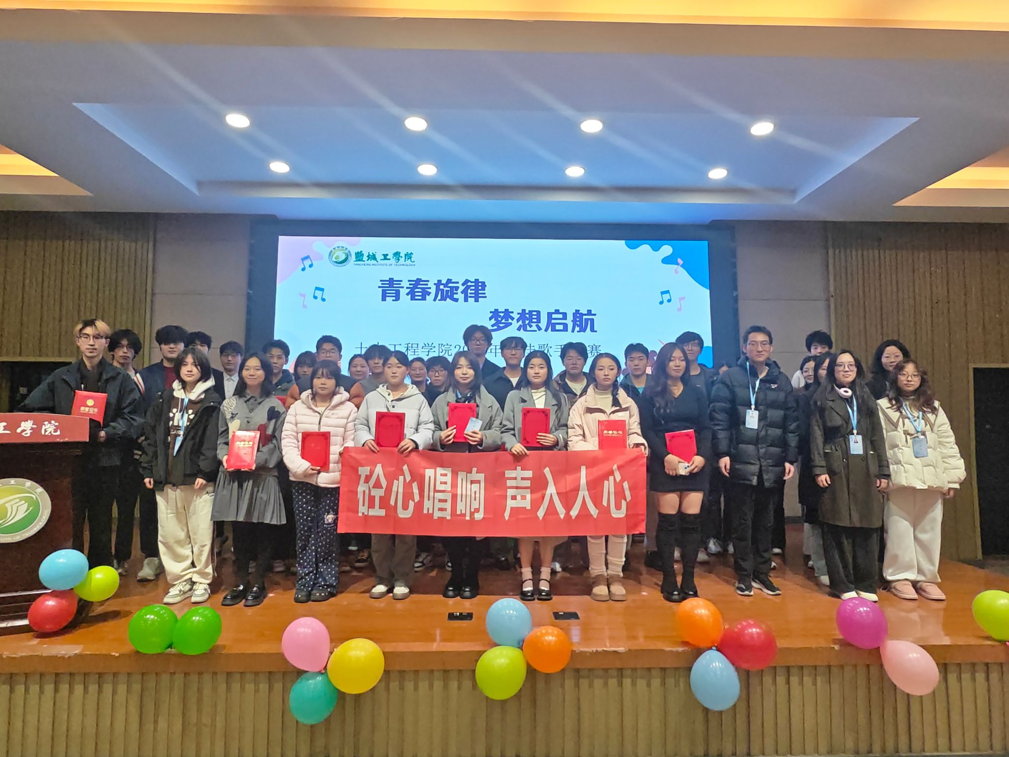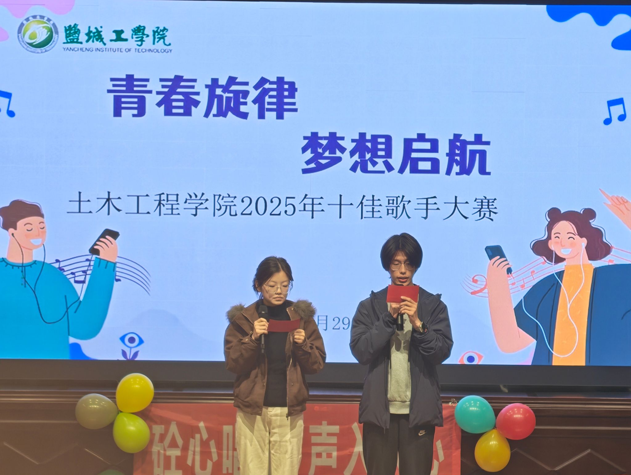 为丰富校园文化生活,营造积极向上的育人氛围,11月29日晚,土木工程学院联合“砼心苑”一站式学生社区在机械馆报告厅举办“青春旋律,梦想起航”2025年十佳歌手决赛。活动由学院学团联合会主席团、部长团成员担任评委,B建筑251刘孜如、B工管521陈宁共同主持,200余名学生代表到场观赛。