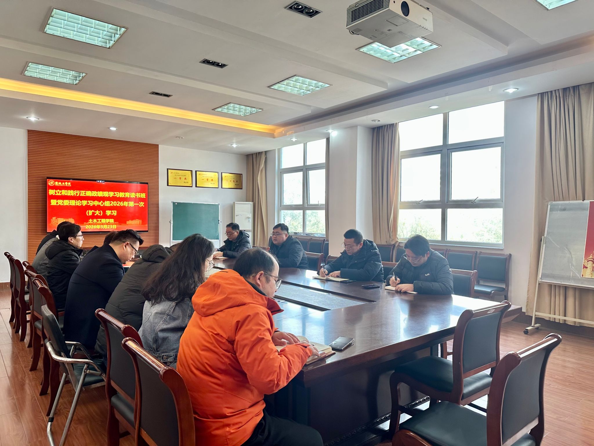 为深入学习贯彻习近平总书记关于树立和践行正确政绩观的重要论述,全面落实党中央决策部署及学校党委工作要求,3月23日上午,土木学院在土木馆A206会议室举行树立和践行正确政绩观学习教育读书班暨党委理论学习中心组2026年第一次(扩大)学习会,党委理论学习中心组成员、各党支部书记参加。会议由院党委书记谷伟主持。