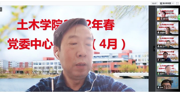 4月29日下午,土木学院党委线上召开四月份党委中心组学习会议,专题学习贯彻习近平法治思想。院长吴发红领学,副院长李富荣、分团委副书记徐佳重点发言,党委书记谷伟作最后点评。